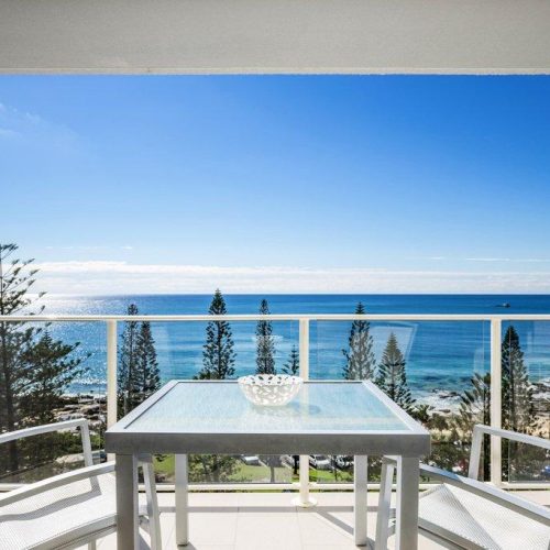 This fully self-contained 2 Bedroom beachfront apartment has beautiful ocean views directly over to Mooloolaba Beach, so close you can hear the sounds of the waves crashing against the shore.
